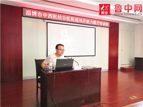 大众报业·鲁中网7月23日讯(记者 荆睿 商丽华 通讯员 李爱学 王其超)为进一步提升基层通讯员工作能力,更好地打造医院品牌,树立展示医院的良好形象,7月23日上午,淄博市中西医结合医院举办通讯员能力提升培训。本次培训班特邀鲁中网资深视频记者李庆宇作专题培训。医院党委委员、工会主席朱浩,宣传工作相关负责人,以及全院50余名通讯员参加了培训。