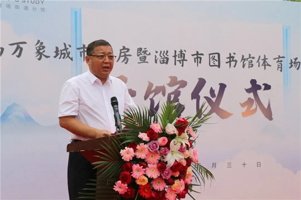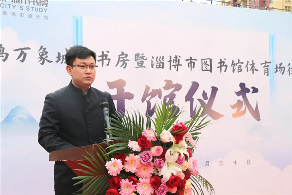 山东天鸿大成置业有限公司副总经理康金龙介绍天鸿万象城市书房建设情况,他说,建设魅力新淄博,离不开对优秀传统文化的继承与发扬。书籍是承载文化的载体,阅读是传承文化的方式。天鸿控股与市图书馆、体育场办事处合作打造天鸿万象城市书房,为淄博市民提供更多的阅读机会,为淄博精神文明建设贡献力量。最后,与会领导共同为天鸿万象城市书房开馆剪彩!