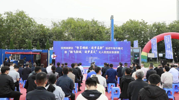 滨州日报/滨州网讯 9月22日,滨州市人才节高新区活动专场开幕式暨“航飞新城·逐梦蓝天”无人机竞技表演赛在山东滨州无人机基地虎跃起降场举行。