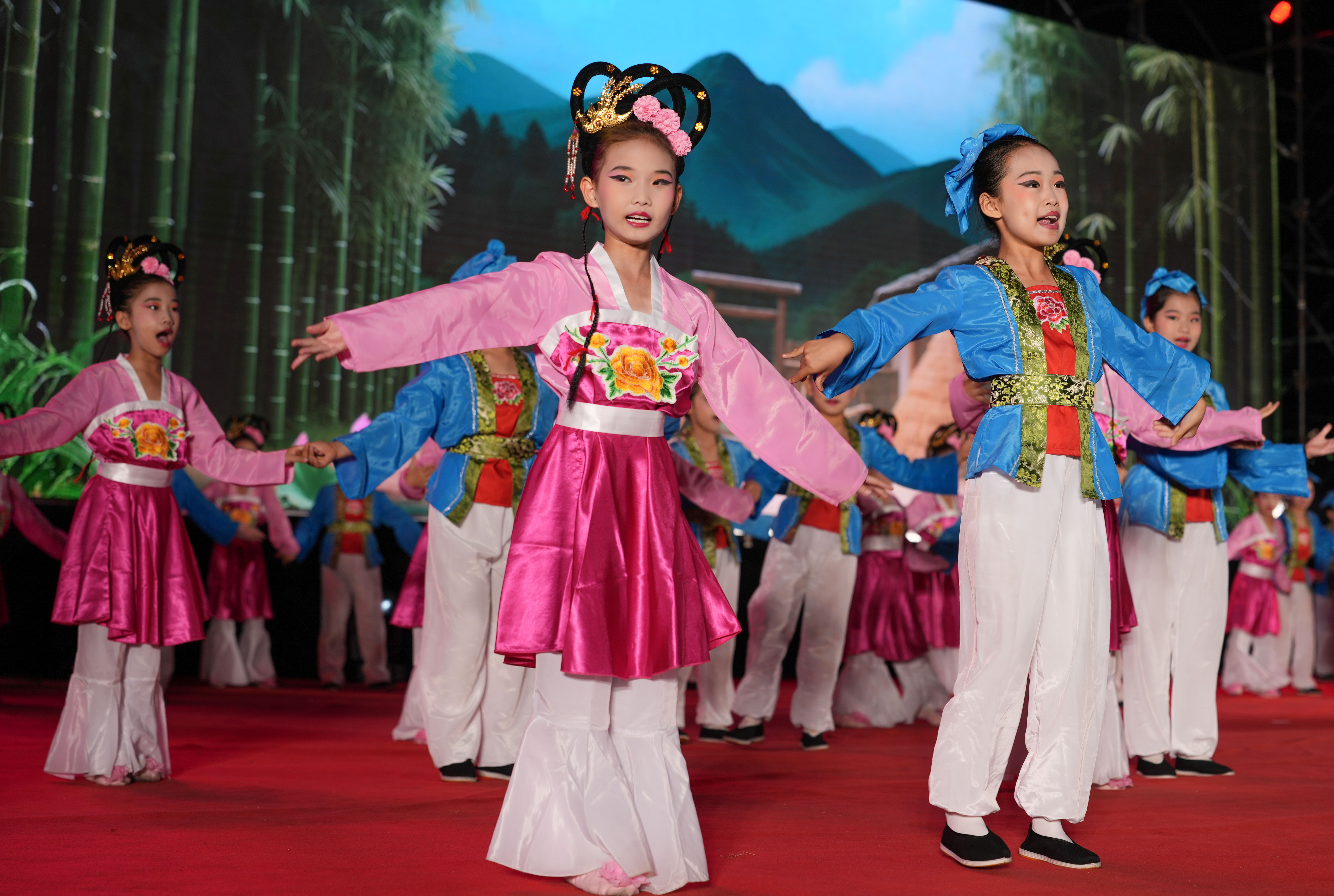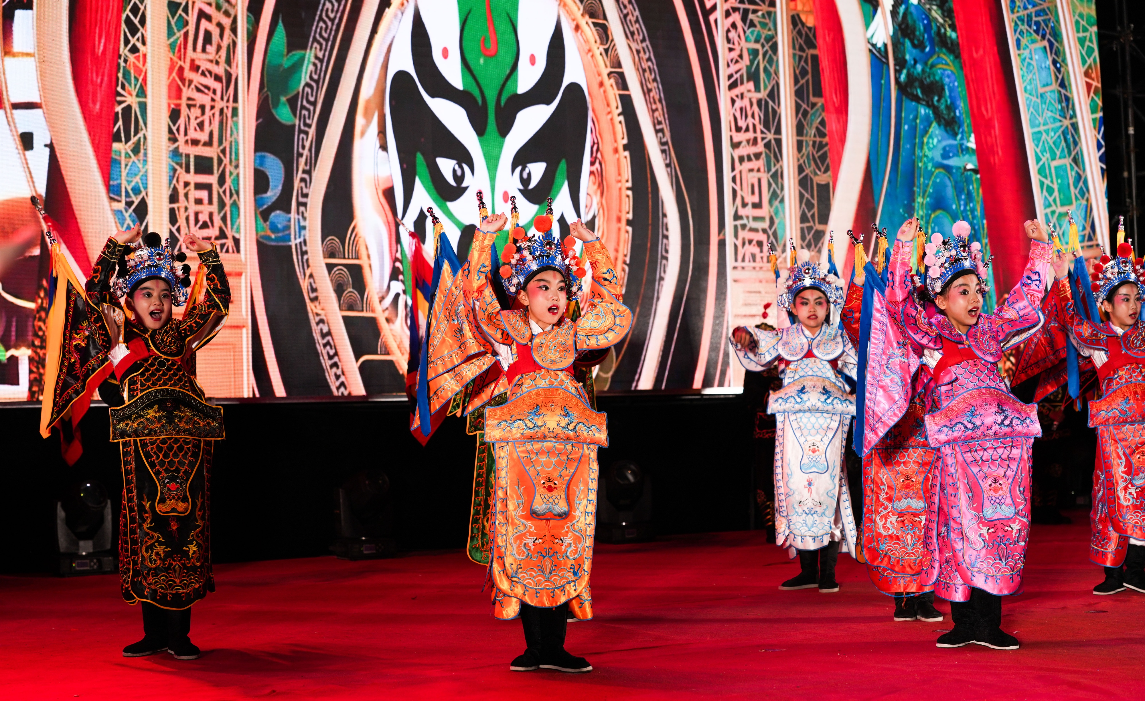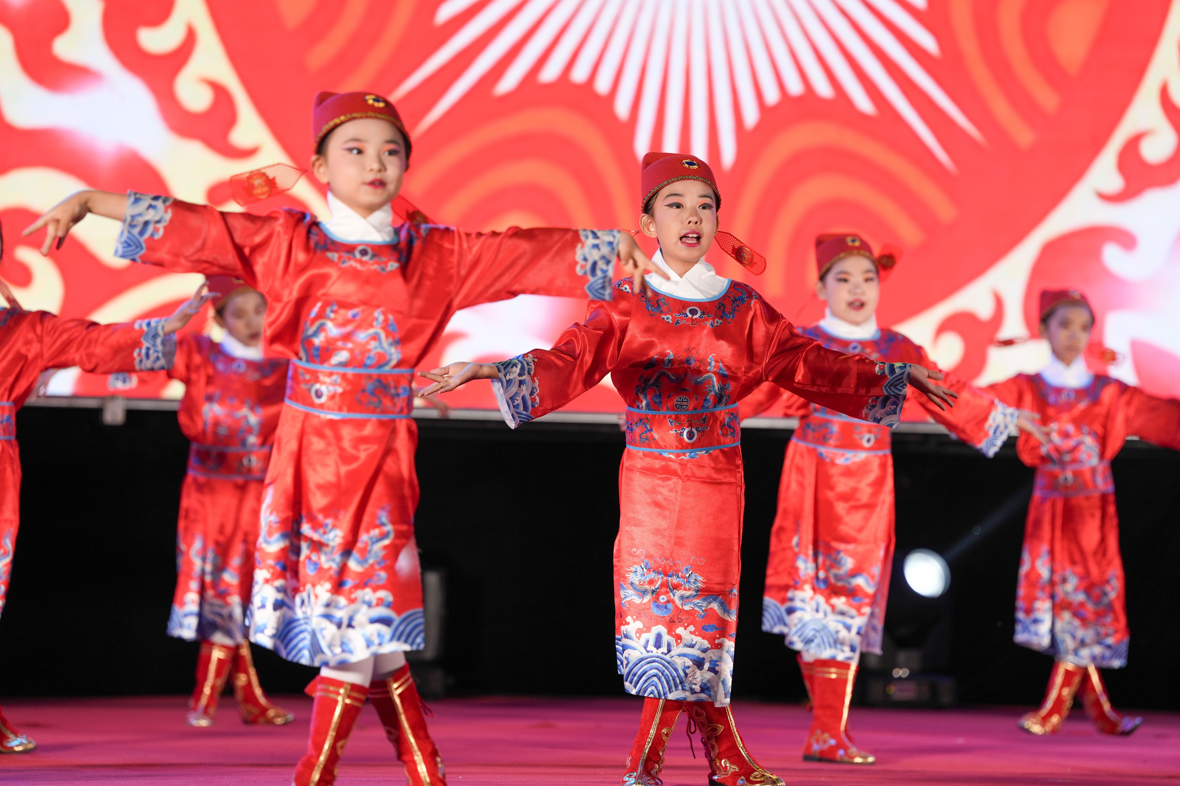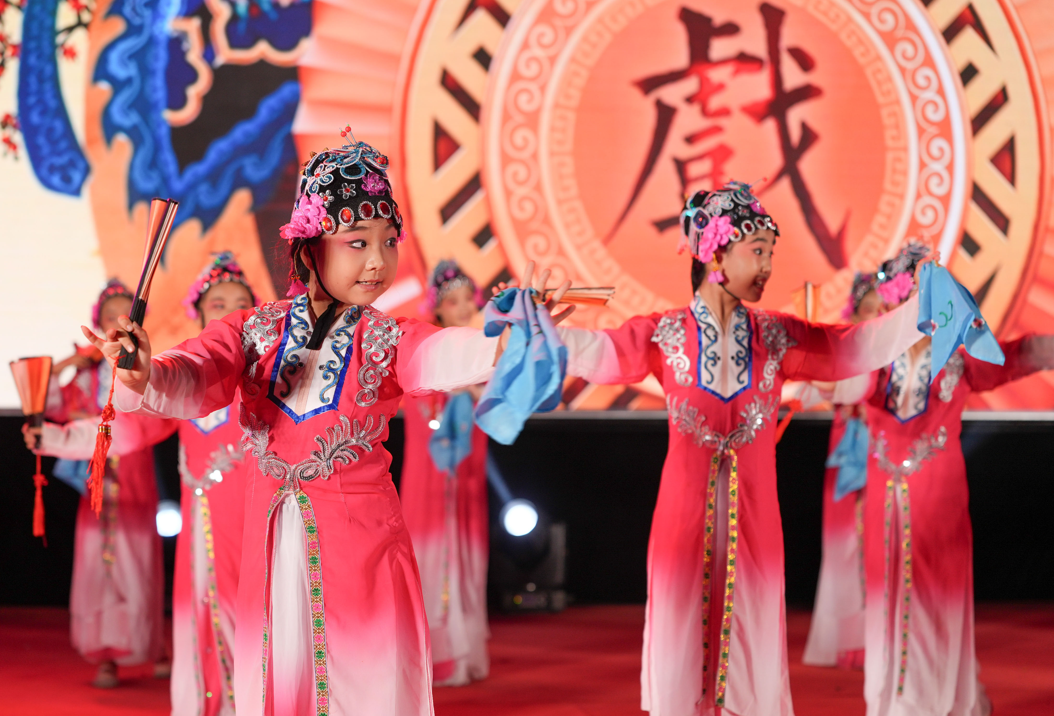 9月29日,山东省邹平市举行庆国庆唱戏曲诵经典文化节,来自全市十多所小学的小学生表演京剧、黄梅戏等传统戏曲,齐声诵读文化经典,在文脉传承中迎接国庆节。
