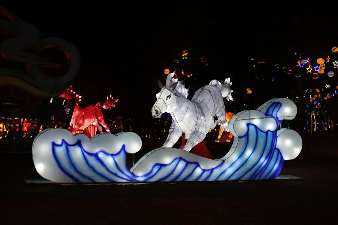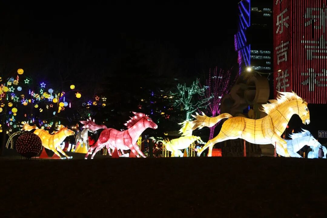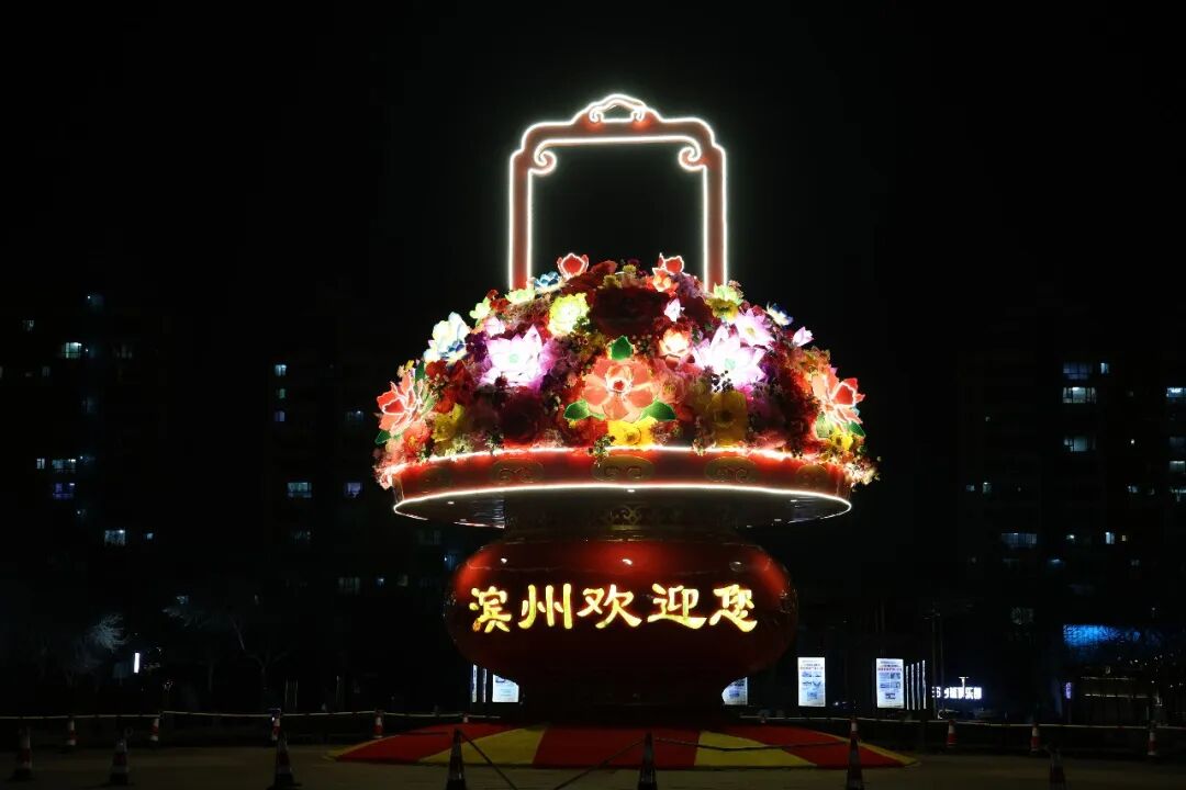 彰显滨州产业实力的“品质滨州·冠军产品”灯组、呼应农历马年的“骏马迎春”百米长廊与气势恢宏的“八骏图”,尽显滨州奋进姿态;“五谷丰登”“年年有余”等传统题材灯组,寄托着对新春的美好期许;象征城市远大抱负的“山海经·鲲”造型艺术灯组,勾勒出滨州高质量发展的美好蓝图;百米“24节气灯笼长廊”,让传统文化与节日装饰完美交融;中海公园南门“福气满满”长廊、市政广场南侧的“滨州欢迎您”牡丹花篮灯组,以盛放之姿传递着滨州的热情与开放,喜迎八方宾朋。