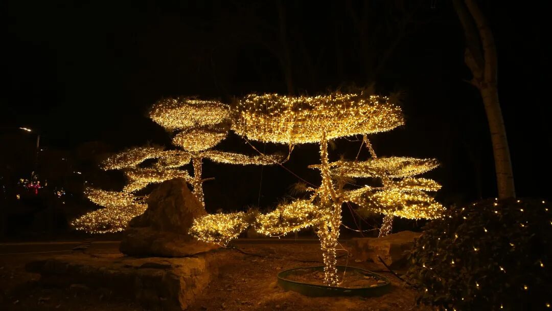 市城管局秉持“不仅追求亮化,更追求美化、艺术化”的理念,在亮化设计与施工中精益求精。依据树木自然形态个性化布置LED灯串,搭配中国结、红灯笼、福袋等节日装饰,做到疏密有致、高低错落,实现自然景观与人文艺术的和谐共生;在灯具选型上严格把控安全与环保标准,通过点、线、面结合的科学布光方式,凸显建筑的立体感与层次感,全方位提升市民的视觉体验与观赏感受。