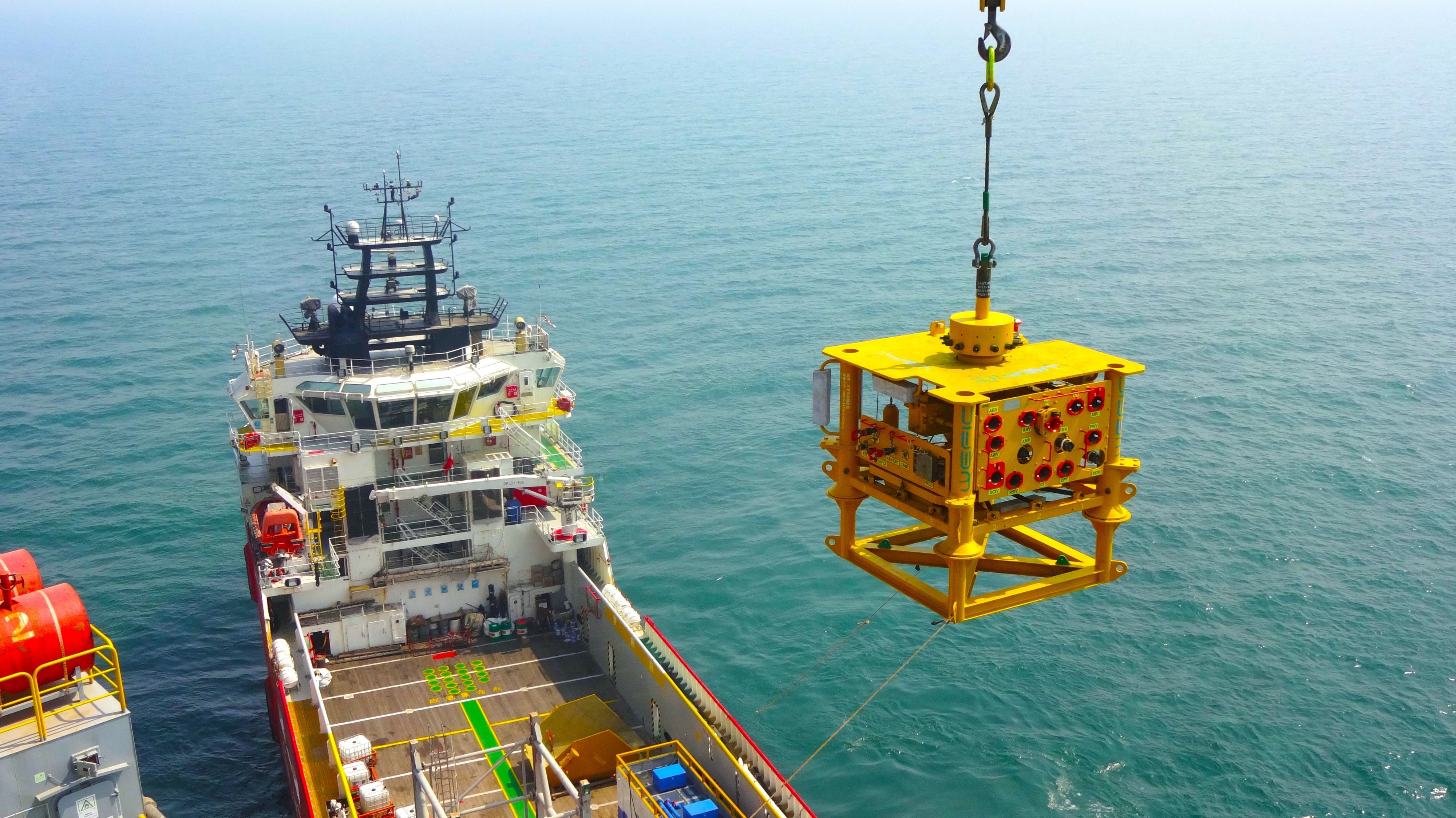 威飞海洋联合中海油自主生产的国内首套浅水双电泵水下井口采油树海试成功。(受访者供图)