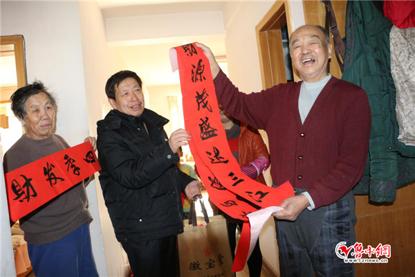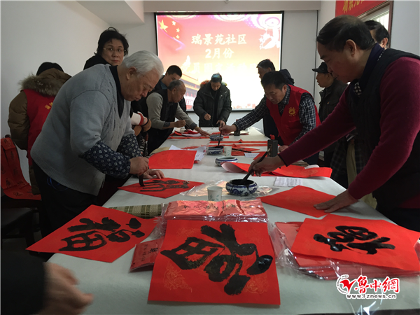 鲁中网-鲁中晨报2月9日讯(记者 张琦 通讯员 刘玲 马琳琳)为了创建社区文化氛围,喜迎新春,2月7日科苑街道瑞景苑社区与党建共建单位黄河河务局共同开展“墨香迎春,新年送福”活动。这次活动邀请了张店书画院的老师们,他们现场挥毫泼墨为社区居民书写新春对联,居民们也都积极地参与其中,现场练起字来。这次活动不仅陶冶了情操,而且给大家带来了欢乐,也让大家感受到了年的味道。书写完毕现场送福到手,并为那些不方便出门的社区老党员们送福到家。