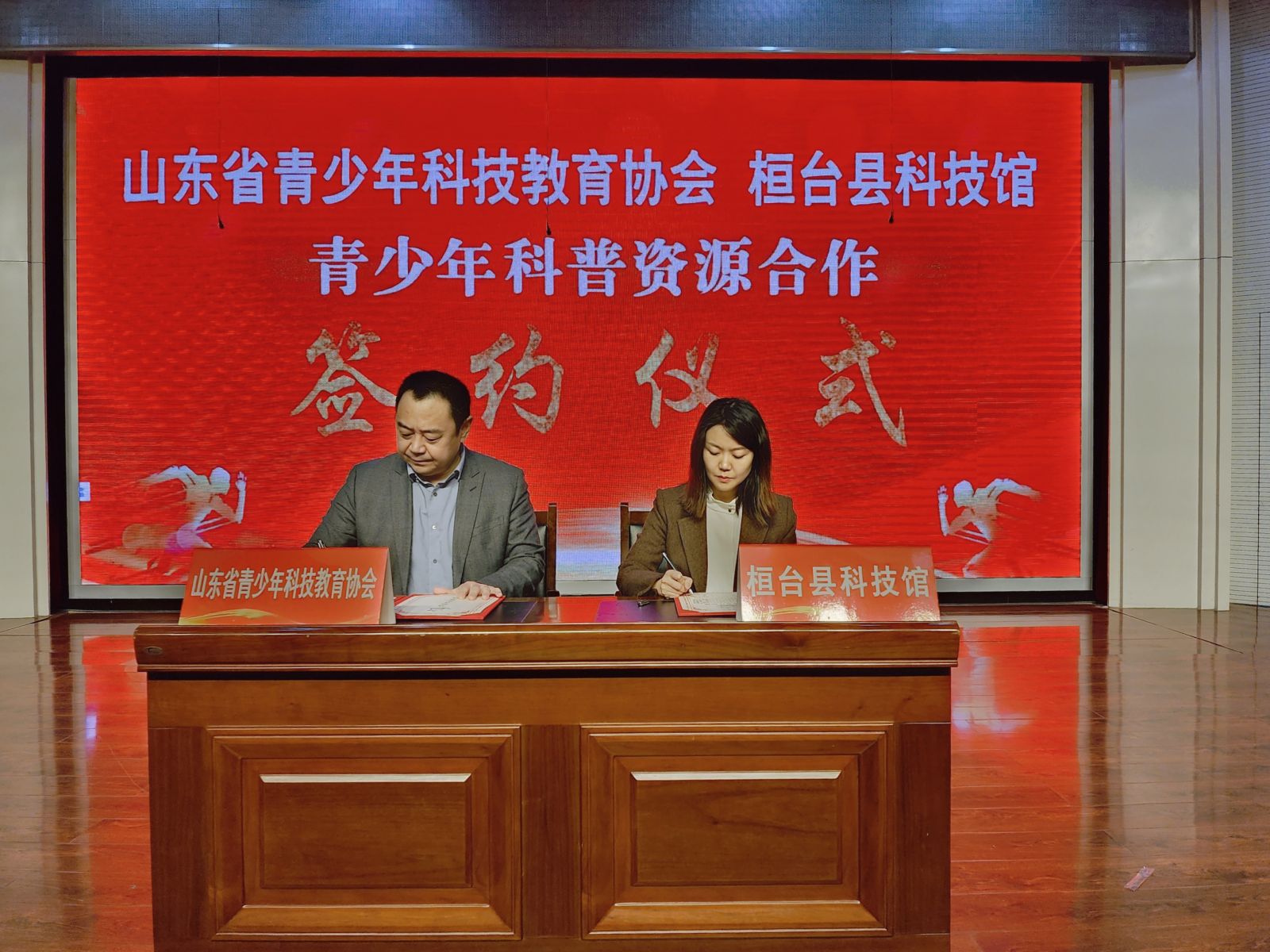 山东省青少年科技教育协会与桓台县科技馆进行了青少年科普资源合作签约仪式。