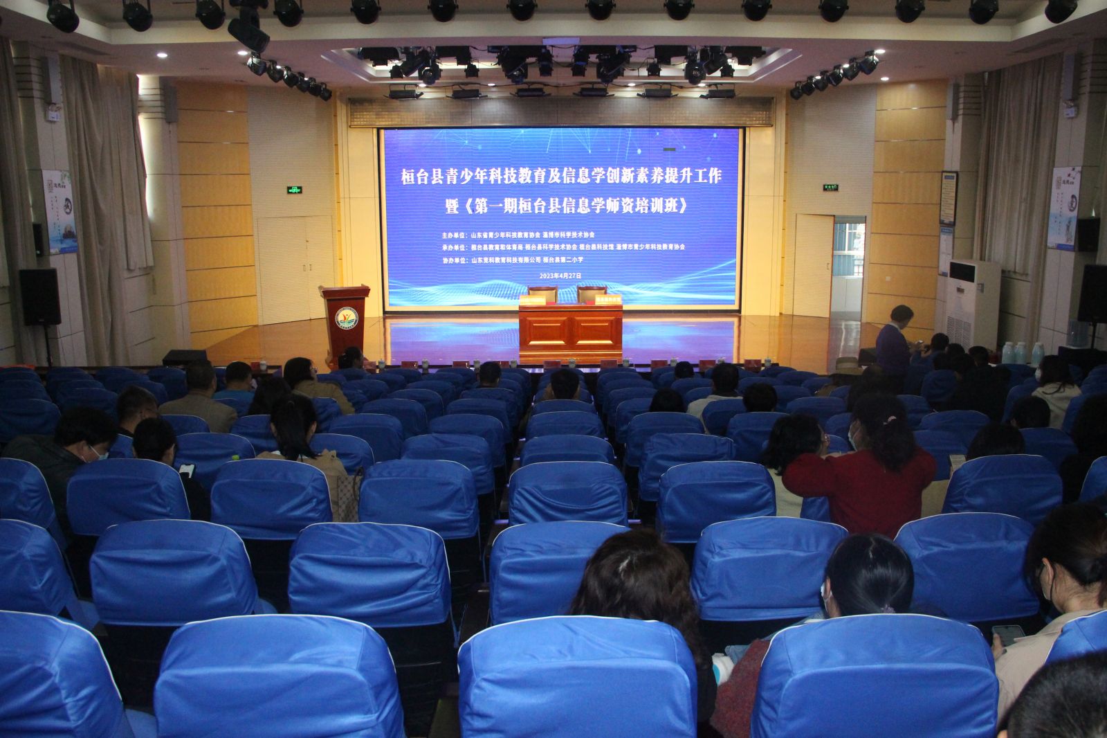 鲁中网淄博4月27日讯(记者 张艳 孙文泽)为提高桓台县中小学教师队伍的信息学专业素养,促进桓台县中小学信息学创新素养提升工作,助力区域科教新城发展战略,4月27日,桓台县青少年科技教育及信息学创新素养提升工作暨《第一期桓台县信息学师资培训班》在桓台县第二小学举行,山东省青少年科技教育协会秘书长陶永喜致辞,淄博市青少年科技教育协会会长陈会秋,桓台县科学技术协会党组书记、主席薛伟,桓台县教育和体育局党组成员、副局长孙静,桓台县科学技术协会党组成员、科学技术馆馆长杨希等出席活动。