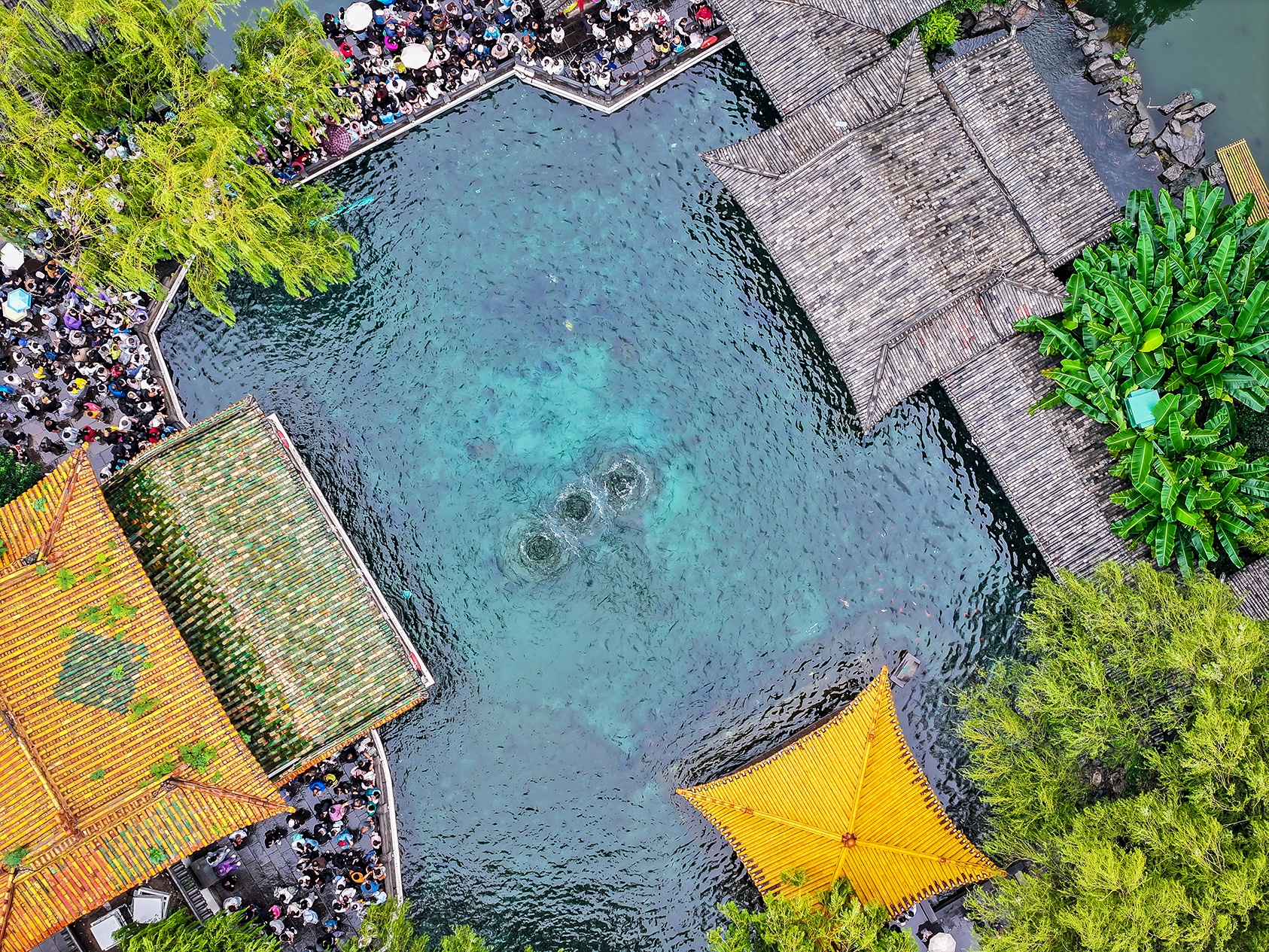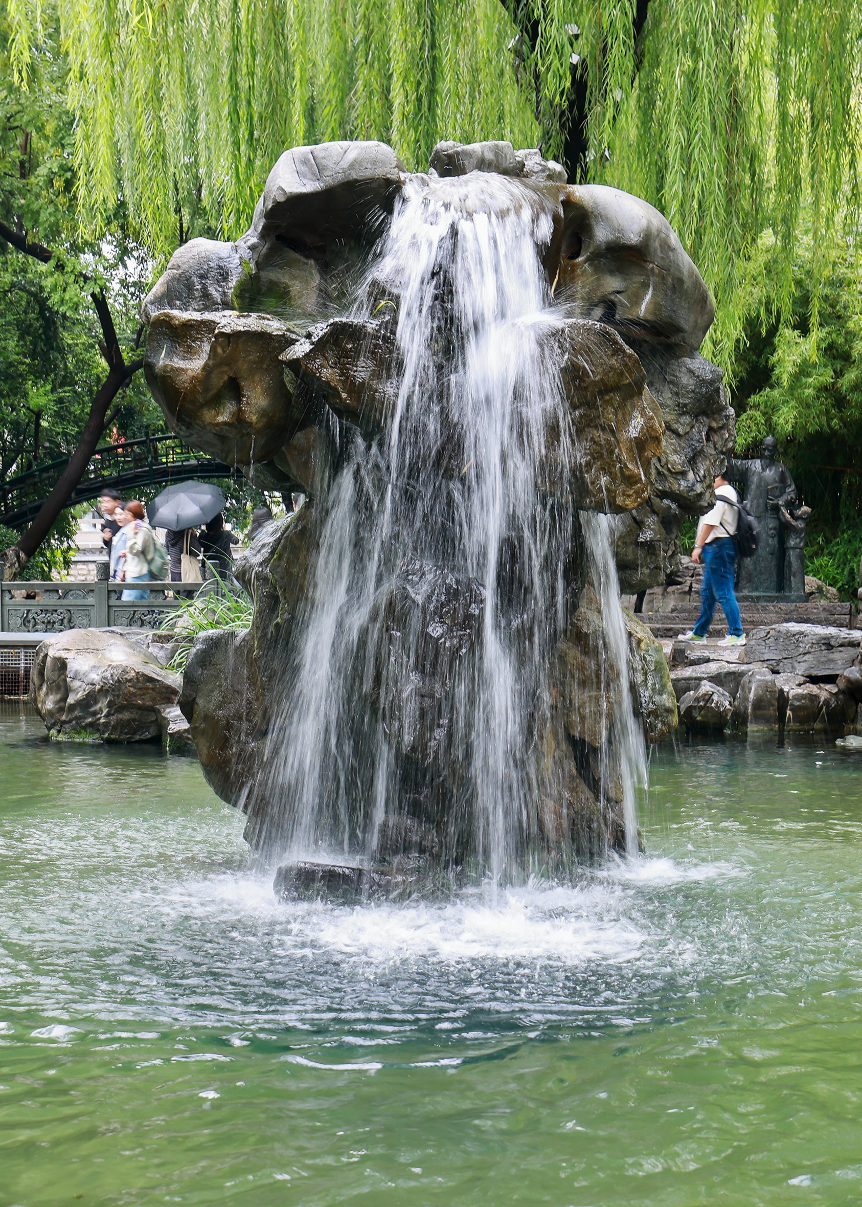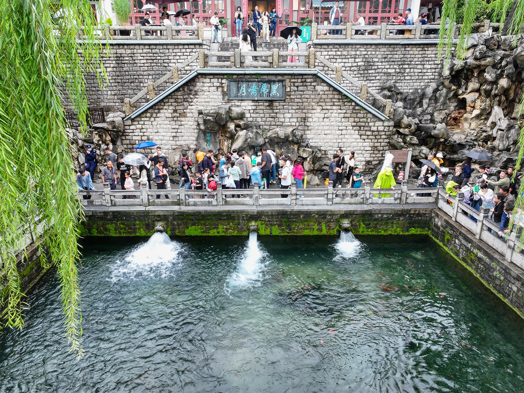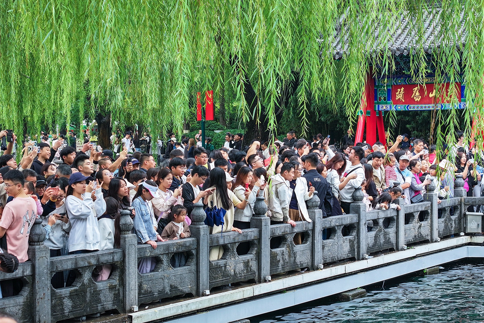 今日(10月6日)的阴雨天并没有影响游人们赏泉的兴致,看“趵突撒欢”,听“黑虎啸吼”,观“月牙飞瀑”,别有意境,感受到中秋节泉边的生动和美妙。