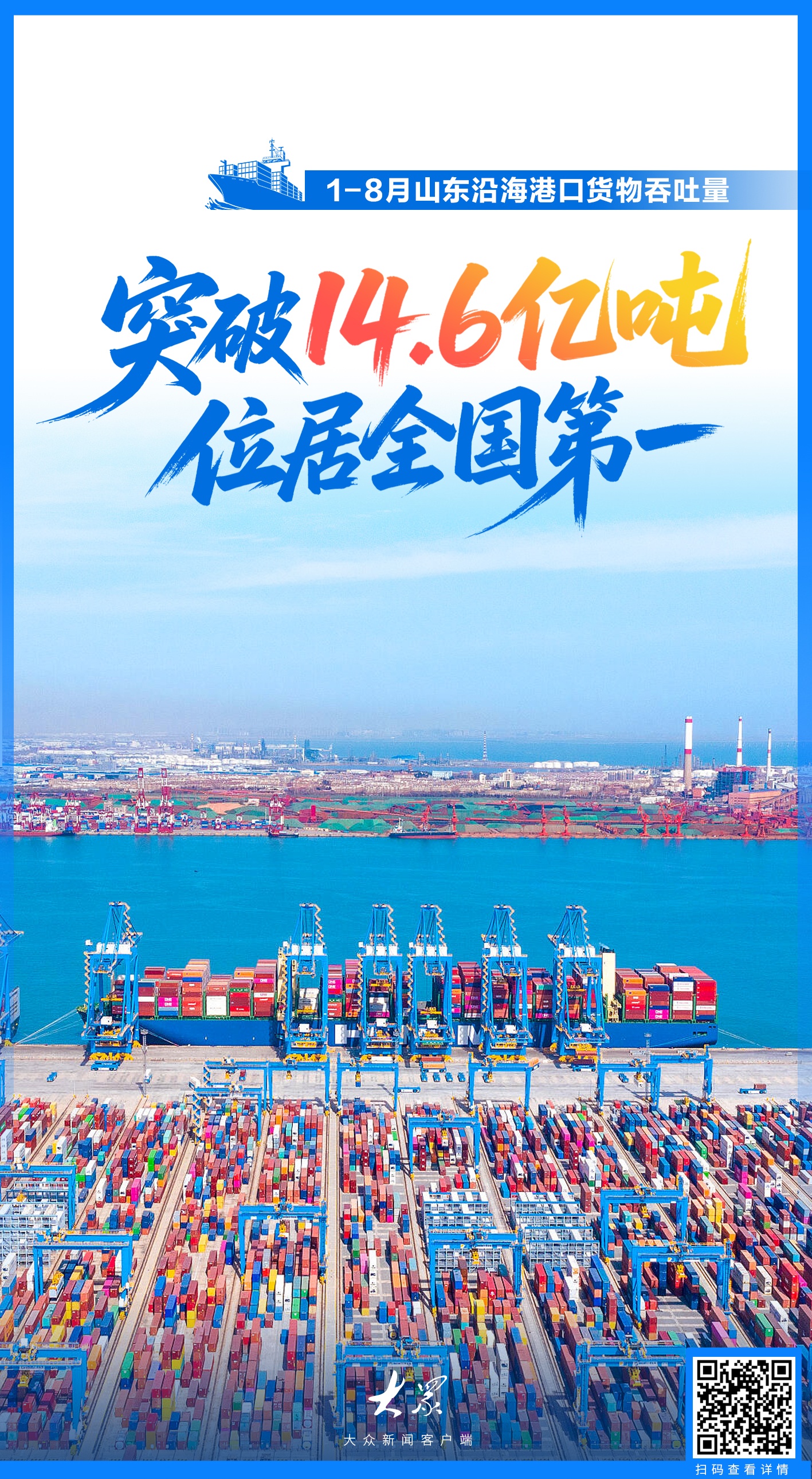 交通运输部近日发布2025年1-8月全国港口货物、集装箱吞吐量统计。数据显示,1-8月,山东沿海港口累计货物吞吐量达到146115万吨,居全国第一位,其中外贸货物吞吐量达到76990万吨。