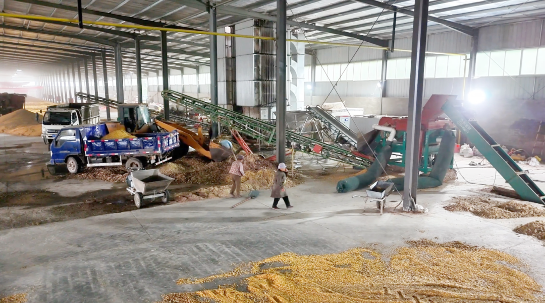 烘干厂房内,机器轰鸣。该企业购置了粮食烘干塔、脱粒机等设备共20台(套),并建成了2600平方米的中转库,实现年烘干粮食6万吨的产能,也为周边村民解决了燃眉之急!