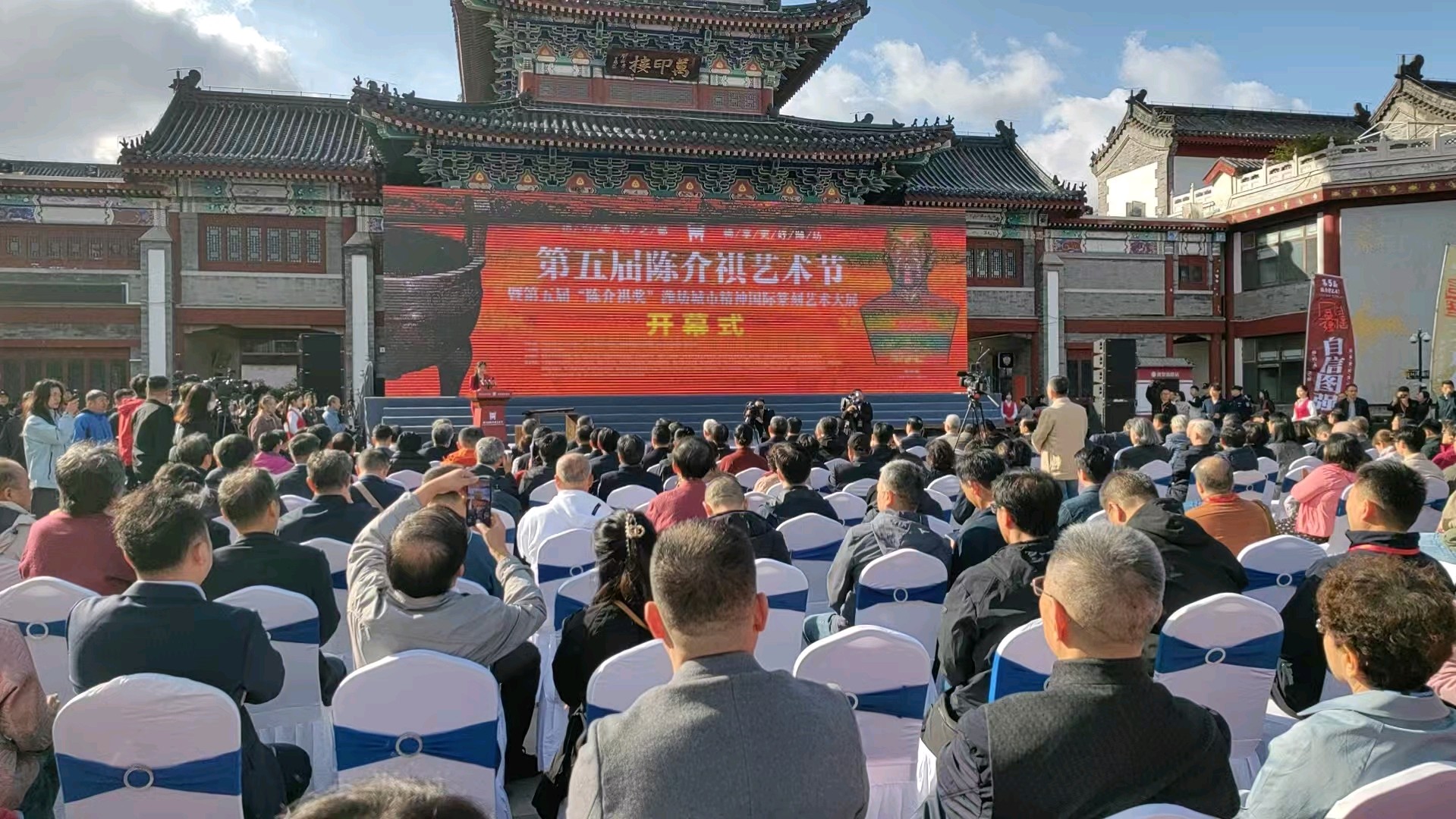 10月18日,第五届陈介祺艺术节在潍坊市潍城区开幕。开幕式采取线上与线下同步方式进行,线下主会场设在十笏园文化街区,分会场除在当地的潍坊学院、郭味蕖美术馆、中国画都美术馆等地外,还在北京师范大学、山东艺术学院、中国台湾设有3个分会场。线上在日本大阪、韩国首尔、美国纽约、新加坡等9个国家和地区同步直播。