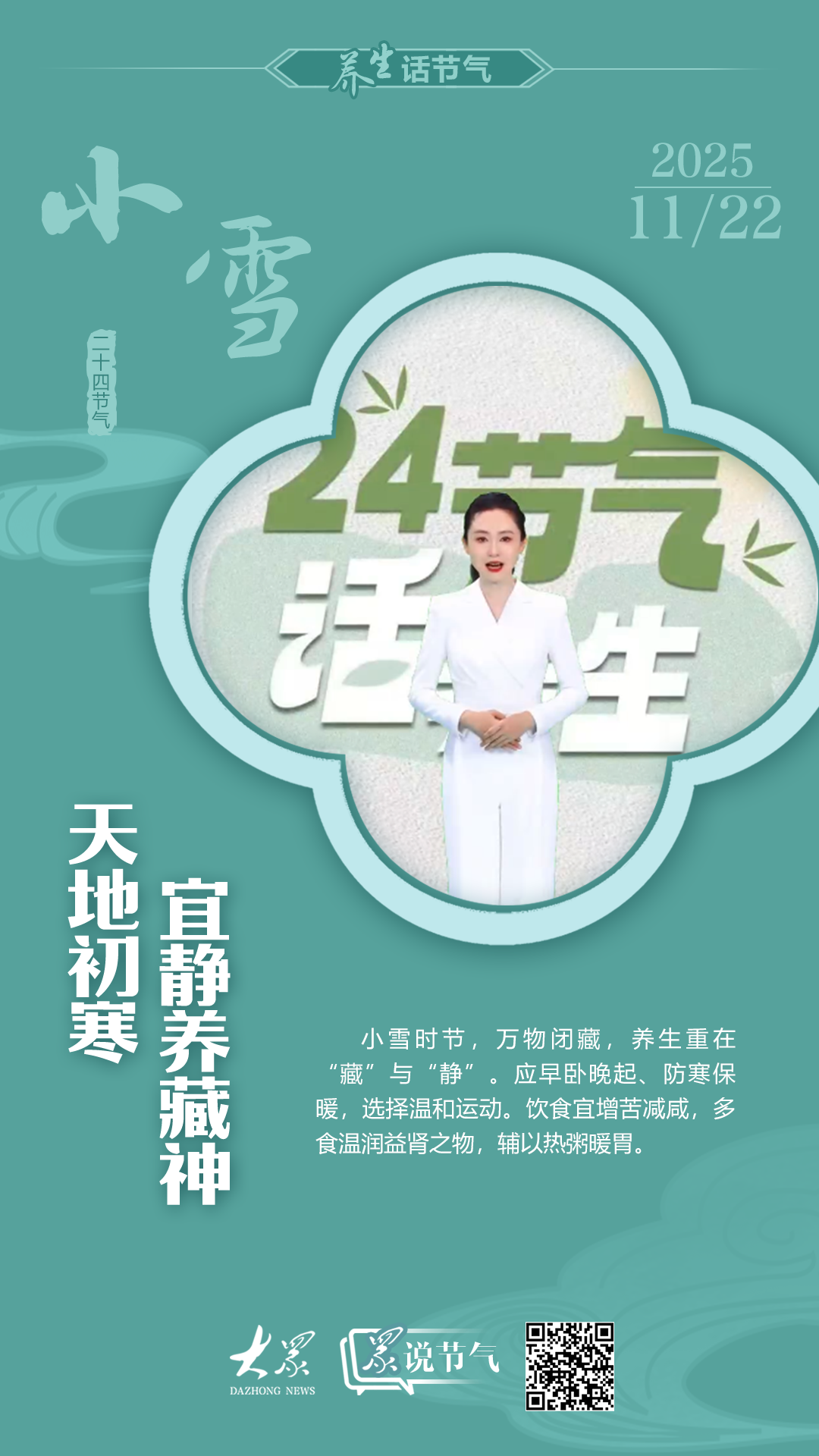 “小雪气寒而将雪矣。”小雪时节,万物闭藏,养生当顺应自然,重在“藏”与“静”,以敛阳护阴,固本培元。