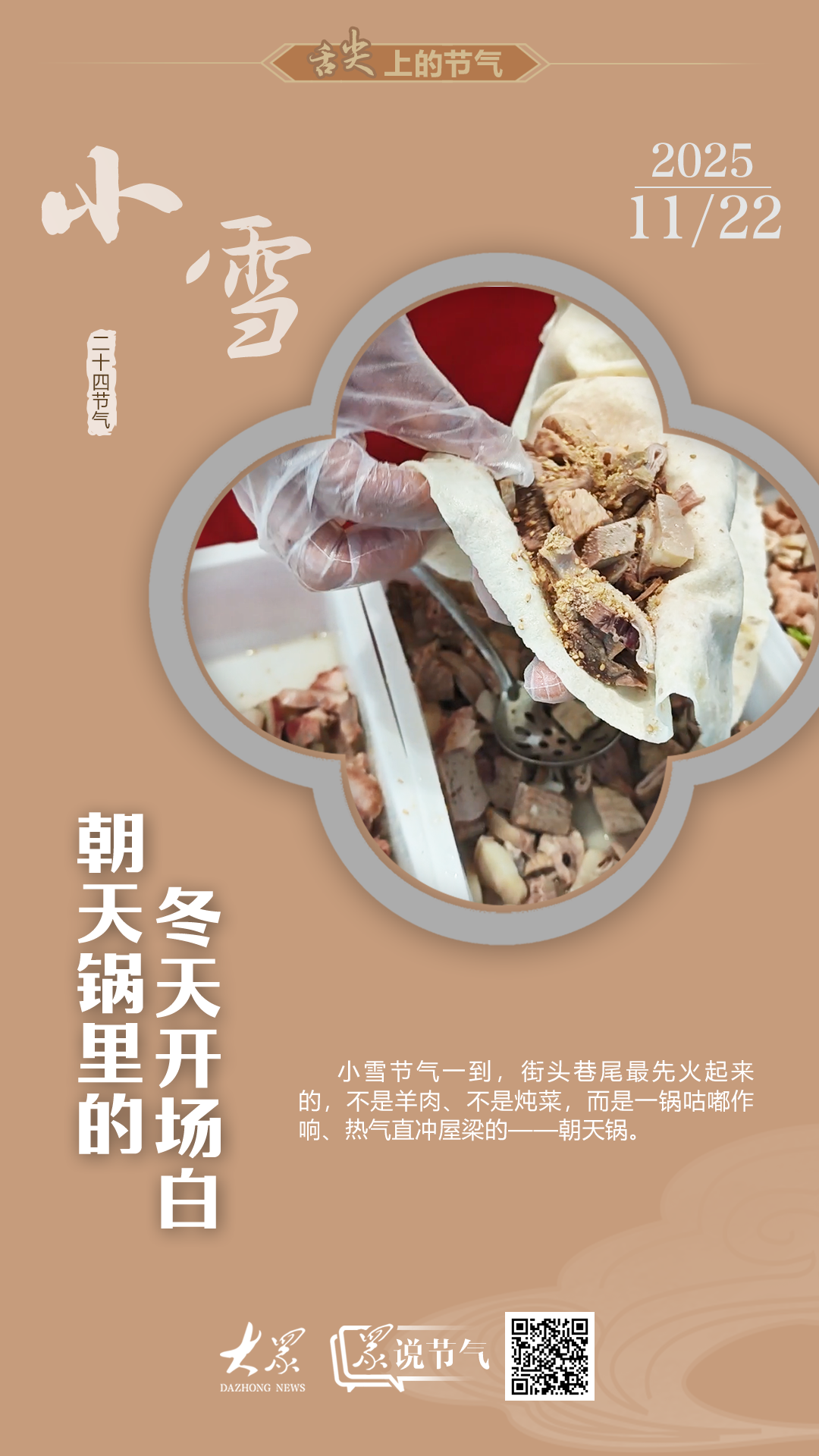 在山东,小雪不是大雪纷飞的日子,而是“寒意初现、胃口收拢”的信号。鲁北潍坊一带向来讲究顺时而食,小雪节气一到,街头巷尾最先火起来的,不是羊肉、不是炖菜,而是一锅咕嘟作响、热气直冲屋梁的——朝天锅。