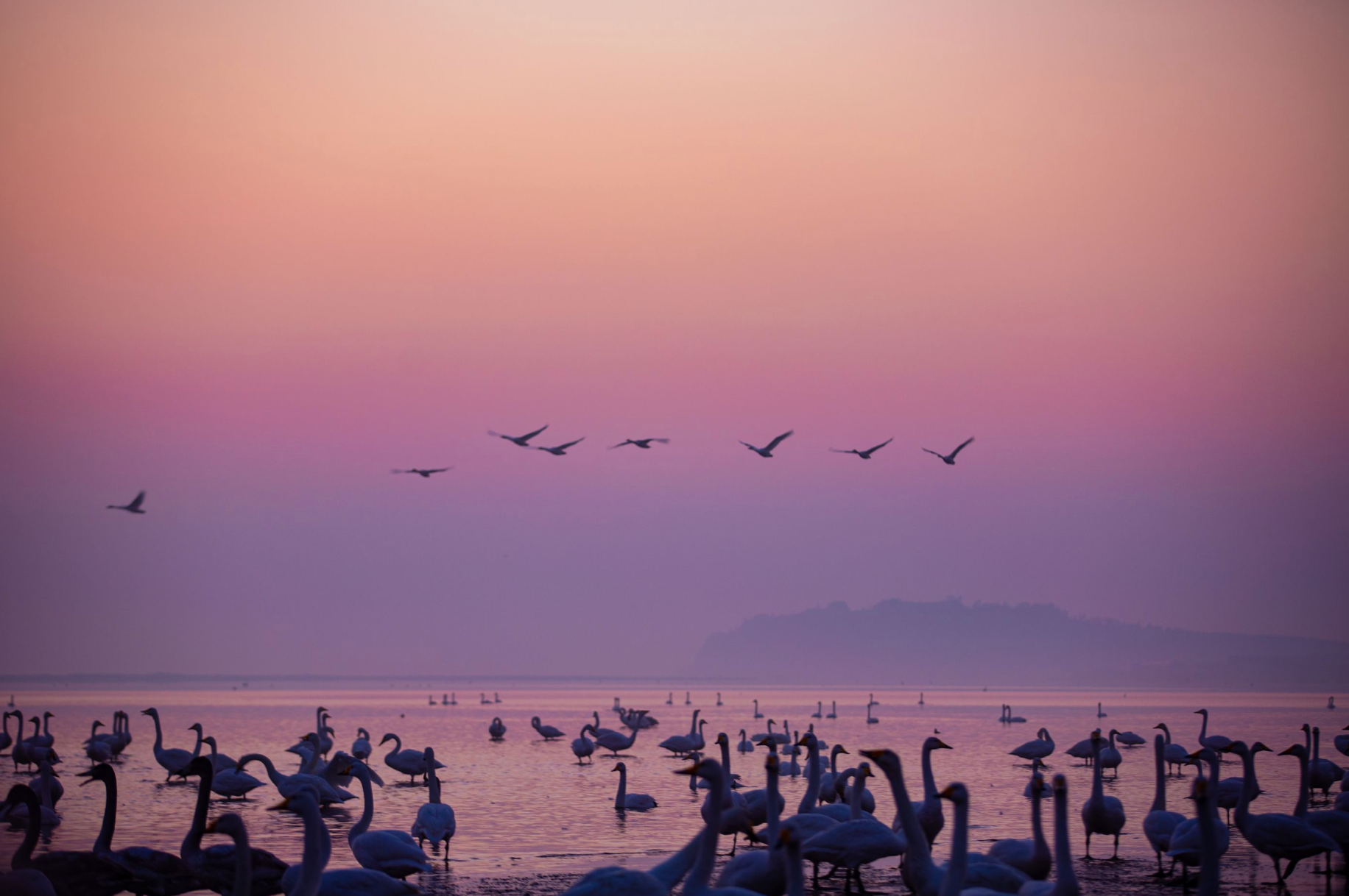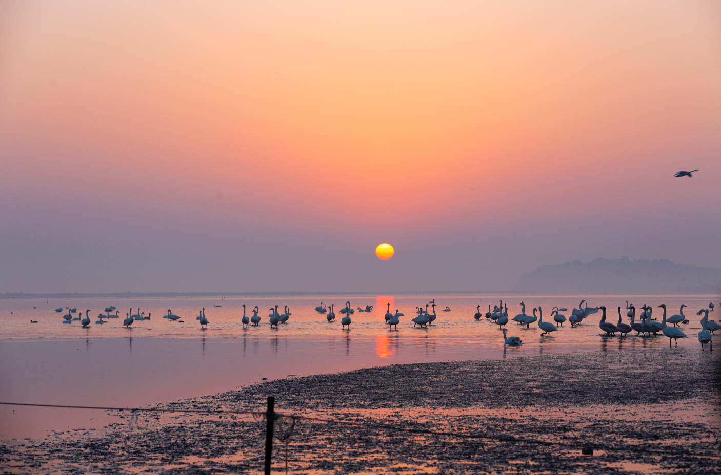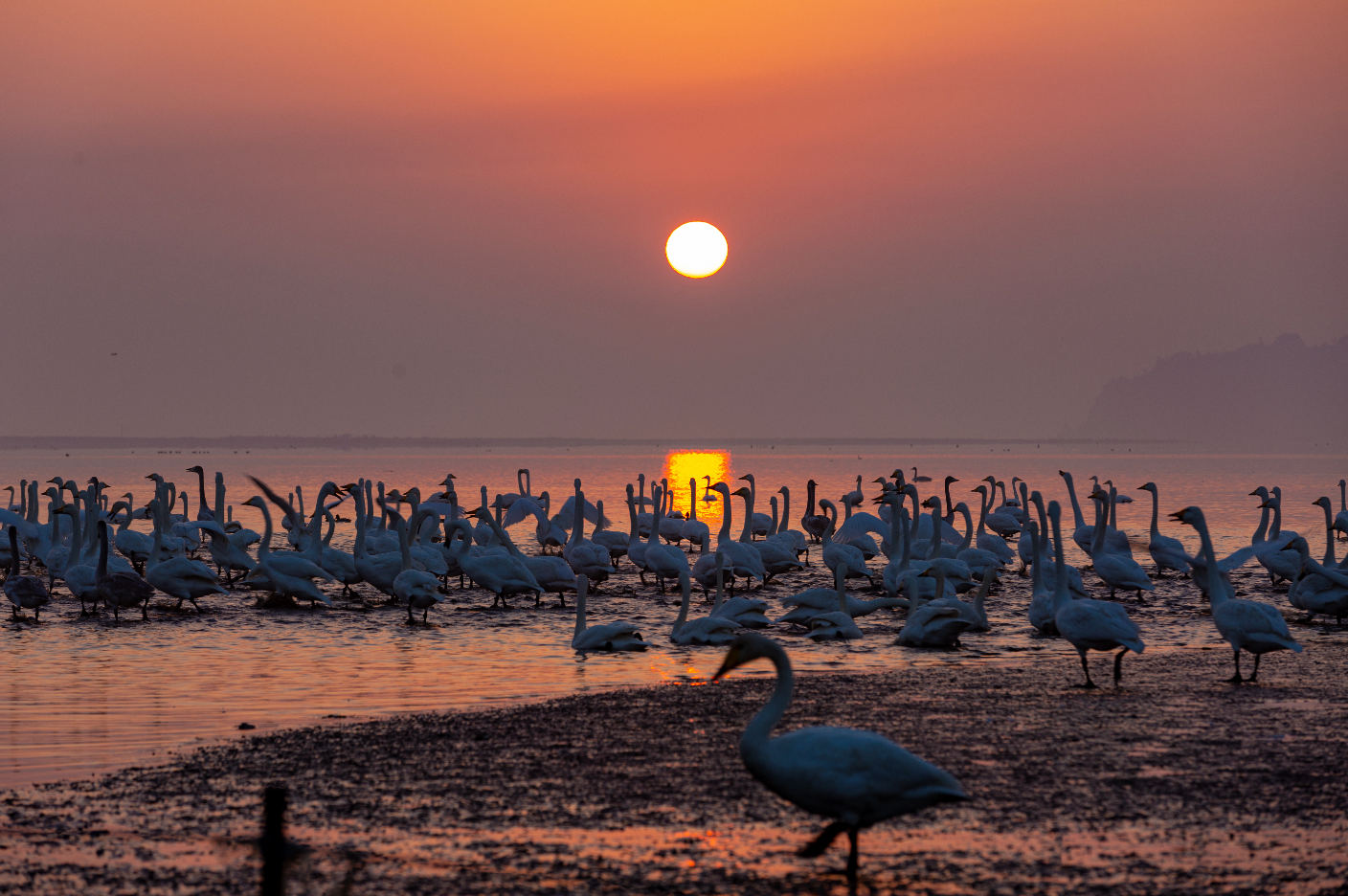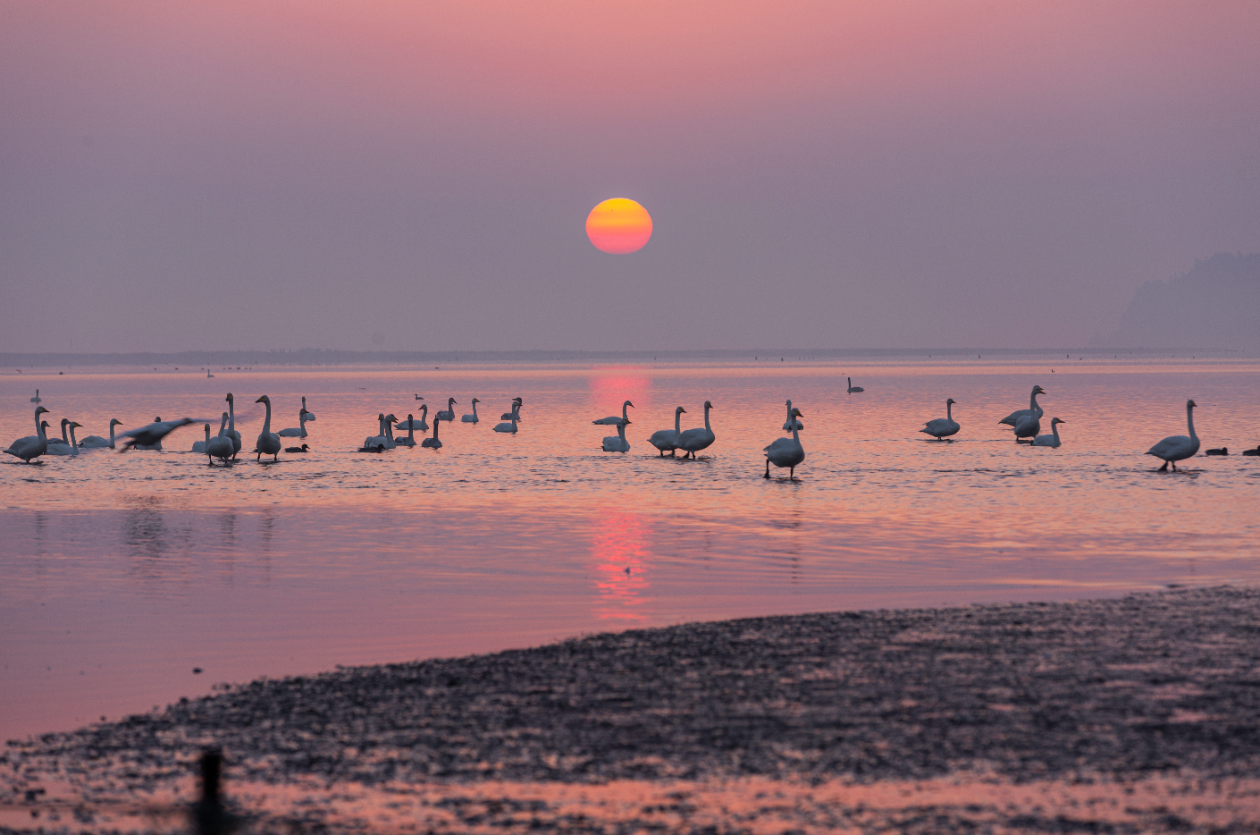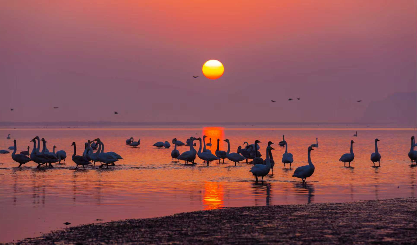 近日,在威海数百只西伯利亚大天鹅在朝霞中舒展羽翼,金色晨光与洁白羽群交相辉映。摄影爱好者架起长焦镜头,捕捉天鹅振翅、戏水、求偶的灵动瞬间,构成“万顷湖天碧,一池雪花白”的冬日生态画卷。