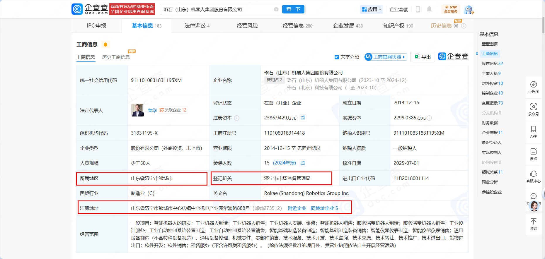 经济导报记者注意到,在上述榜单刚发布时,珞石机器人的总部城市被标注为“北京”,并未被列为山东企业,这与该公司官网标注的“公司总部位于山东”及实际注册地位于山东济宁邹城的信息存在差异。就归属地认定问题,经济导报记者已于1月21日分别向胡润研究院及珞石机器人进行问询。胡润研究院方面表示,现已将珞石机器人总部归属地更新为“山东”。
