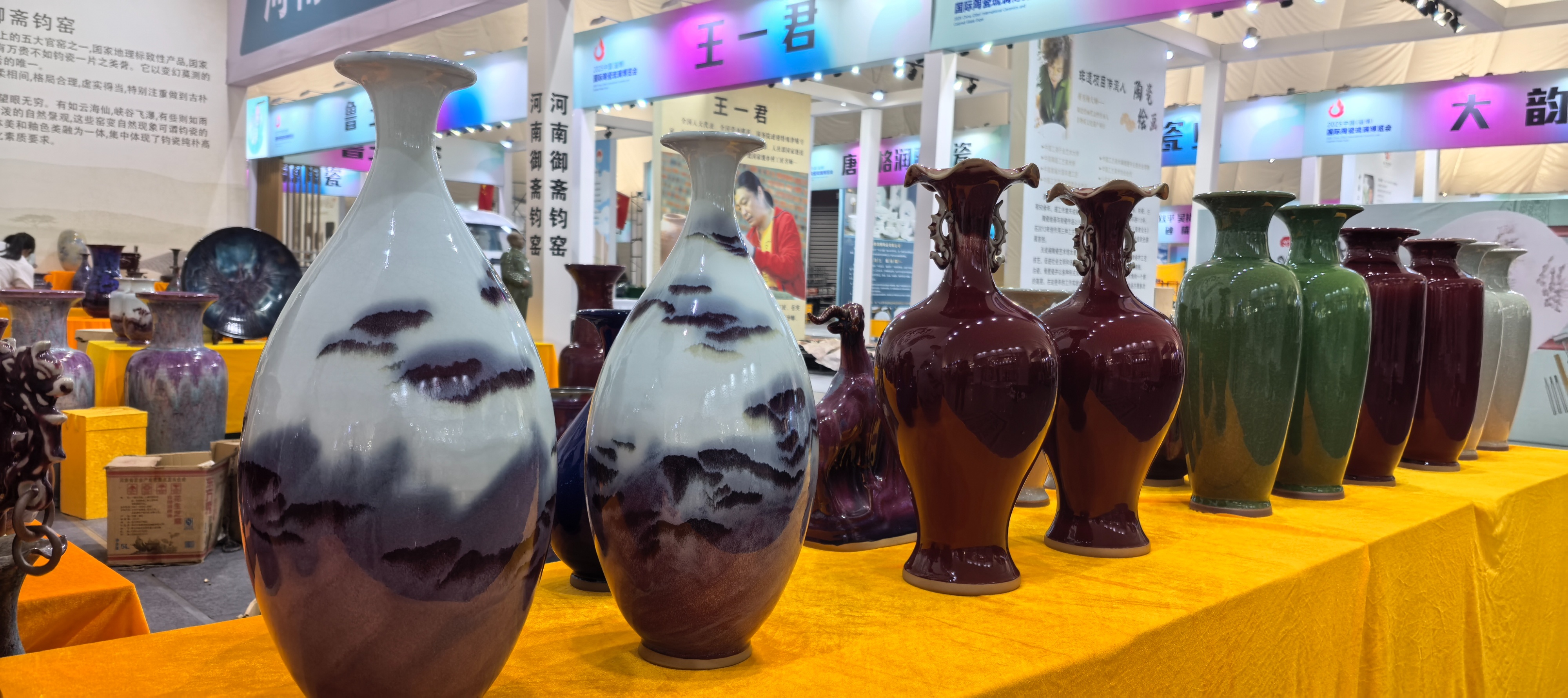 A馆内一幅紧锣密鼓的布展场景,淄博本地的华光国瓷等企业和来自外省市的参展商正将精心准备的展品各归其位,形形色色的各类陶琉制品令人目不暇接。来自河南的一名参展商告诉记者,他们当天凌晨就出发了,上午9点开始进场布展,已基本就绪,“早就期待着来淄博参加陶琉会,也希望通过我们的作品,让淄博消费者、客户领略‘入窑一色,出窑万彩’的钧瓷风采。”