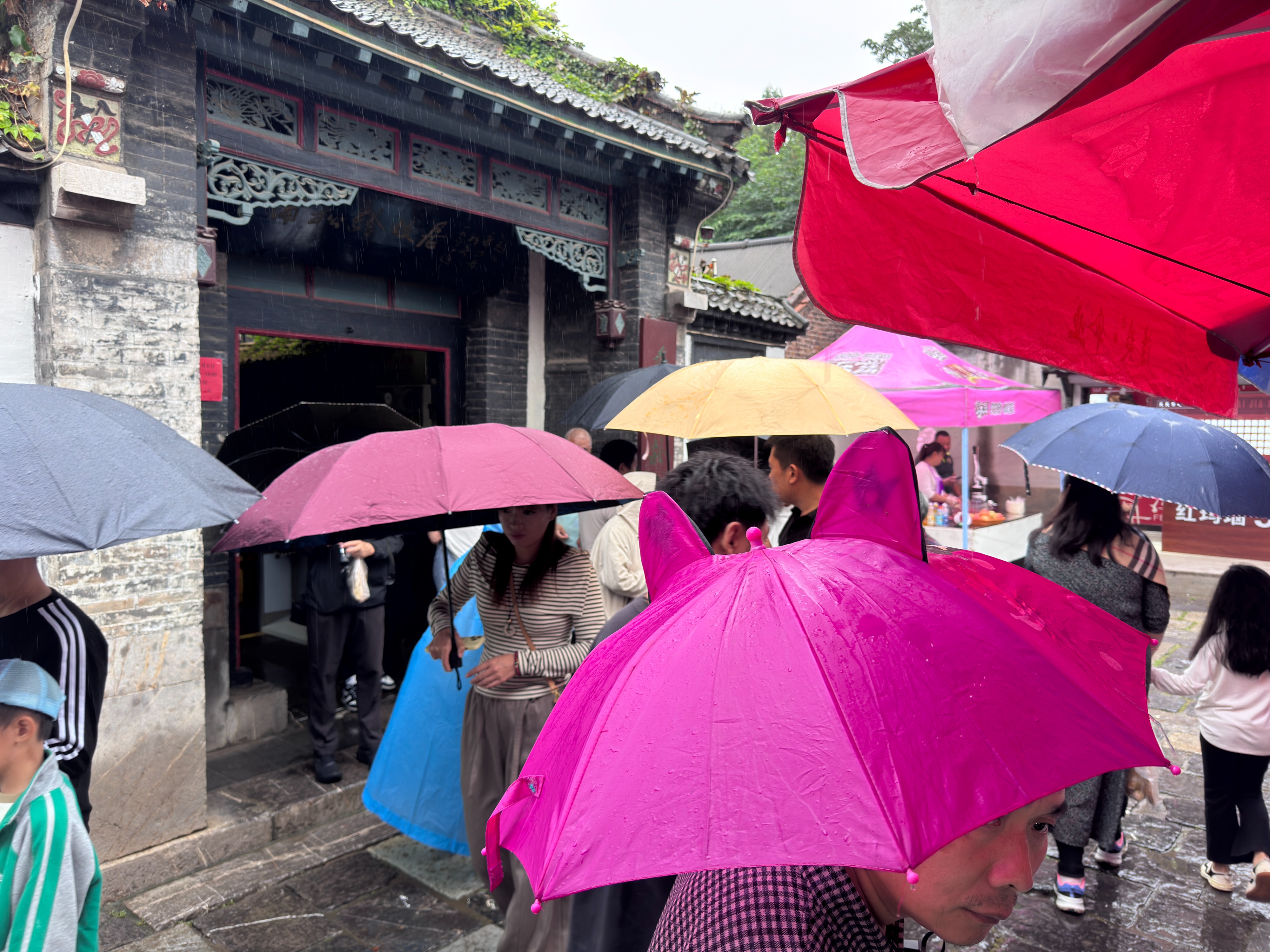 尽管秋雨绵绵,蒲家庄的游客依然络绎不绝。