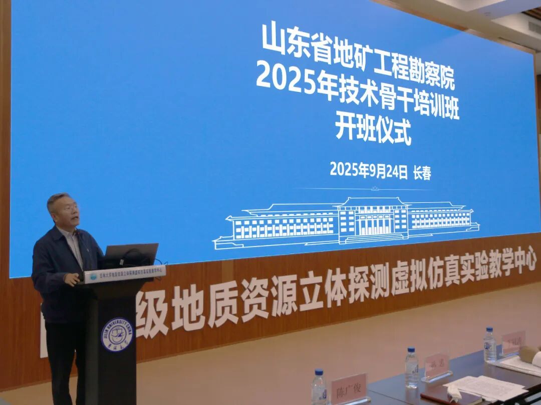吉林大学原党委副书记、副校长,吉林省地质学会、吉林省创新人才研究会理事长韩晓峰出席开班仪式,他期望以此次培训班为契机,推动山东省地矿工程勘察院与吉林大学地学部构建长期、稳定的紧密合作关系,希望双方围绕国家及行业的重大战略需求,在科研协同攻关、人才教学培养、实践资源共享以及课题项目联合申报等关键领域,开展全方位、深层次的务实合作,