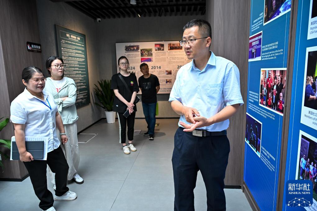 2025年6月19日,郑伟勇在杜立特行动纪念馆为观众义务讲解。新华社记者 张铖 摄