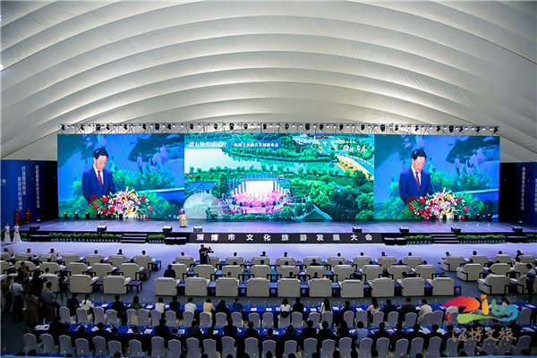 市委书记江敦涛出席大会并作主旨报告,山东省文化和旅游厅副厅长张明池致辞,市委副书记马晓磊主持;北京交通大学现代旅游研究院院长张辉,中国城市规划设计研究院文化与旅游规划研究所所长周建明,山东省旅游行业协会会长、山东大学旅游产业研究院院长王德刚,山东旅游职业学院党委书记陈国忠,中国主题公园研究院院长林焕杰,无锡灵山文化旅游集团有限公司董事长吴国平,伊犁乡伴旅游文化发展有限公司董事长朱胜萱,景域集团董事长、驴妈妈旅游网创始人洪清华,首清奥旅投资管理有限公司总裁吴忠林,新旅界创始人、CEO李阳等应邀出席;市领导丛锡钢、尚龙江、韩国祥、毕司东、毕荣青、王培泉、王树槐、刘荣喜、王可杰、盖卫星、蒲绪章、徐培栋出席。