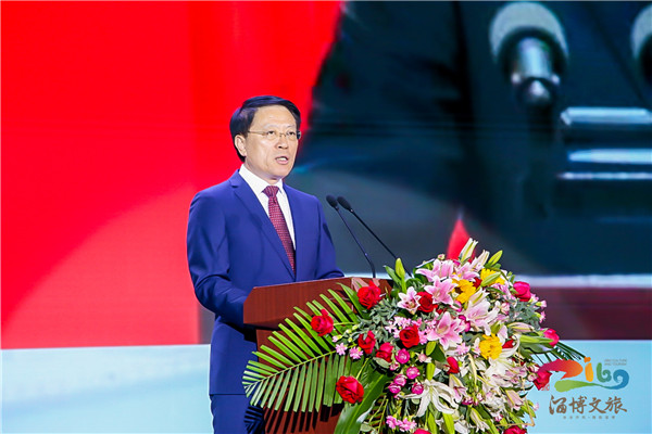 张明池代表山东省文化和旅游厅,向大会的举办表示热烈祝贺。他说,推动文化和旅游融合发展,是以习近平同志为核心的党中央作出的重要决策。近年来,全省认真贯彻党中央决策部署,以融合发展、高质量发展为主线,推动文化和旅游工作开创新局面。淄博市举办这次文化旅游发展大会,是打造高水平开放型城市的重要举措,更是淄博招商链接文旅资源的高端平台,必将引起社会各界高度关注和支持。省文化和旅游厅将全力支持淄博市办好大会,并通过这一平台,将淄博丰富的人文和自然资源推向全国各大知名文旅企业,促进交流与洽谈,引领淄博文旅产业更高质量发展。